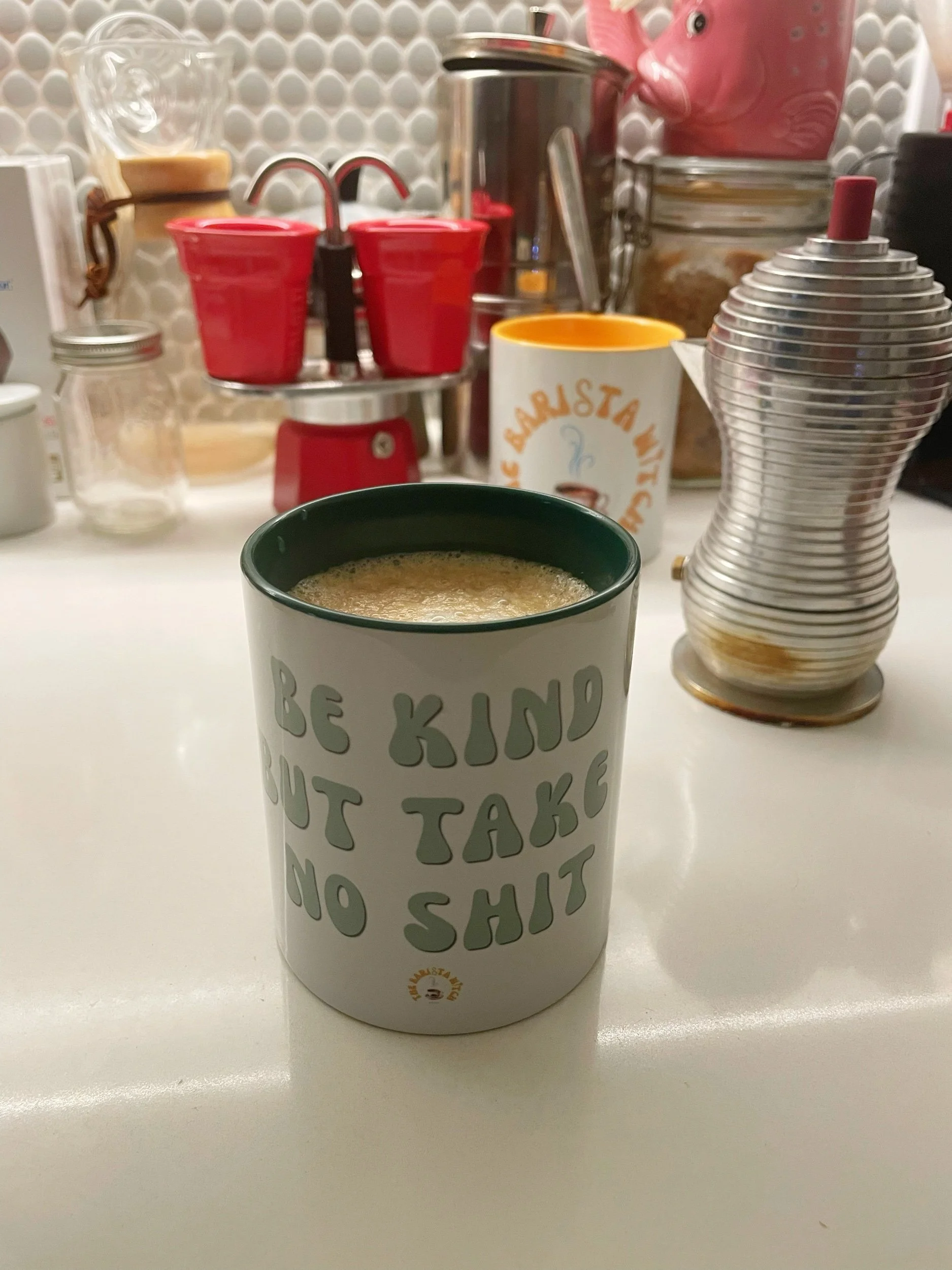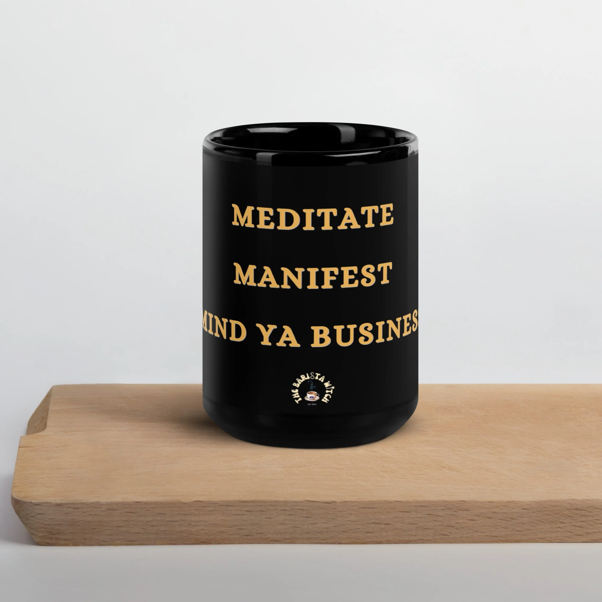 Shoppe › Meditate, Manifest, Mind Ya Business™️ Meditate, Manifest, Mind Ya Business™️ $22.22 • Ceramic • 15 oz mug dimensions: height 4.7" (12 cm), diameter 3.35" (8.5 cm) • Lead and BPA-free material • Glossy finish • Dishwasher and microwave safe • Ceramic • 15 oz mug dimensions: height 4.7" (12 cm), diameter 3.35" (8.5 cm) • Lead and BPA-free material • Glossy finish • Dishwasher and microwave safe Add To Cart Added! You Might Also Like Barista Witch Mug $22.22 Cafe Coven Holographic stickers from $5.50 Be Kind But Take No Sh*t Coffee Mug™️ $22.22